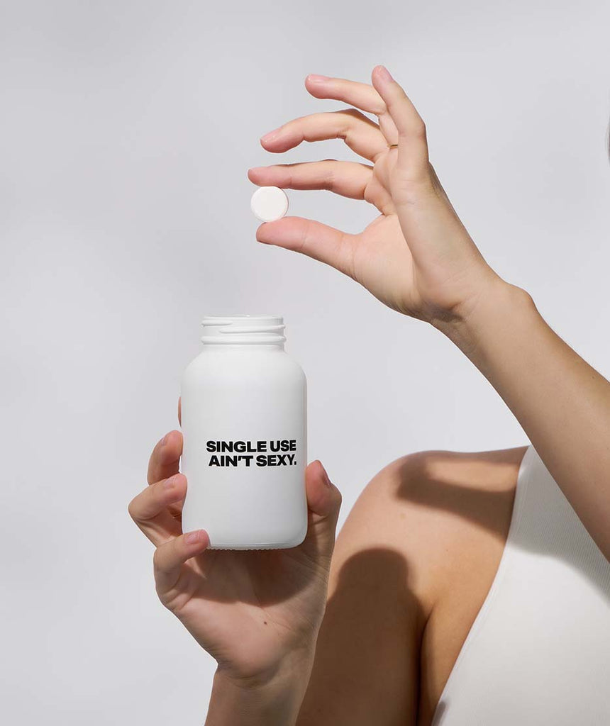 What if we said you could save up to 25 single-use plastic bottles from landfill each year? The solution is simple. Fill one of our sexy reusable glass bottles with water, drop one dissolvable soap tablet, pump the foam and repeat.